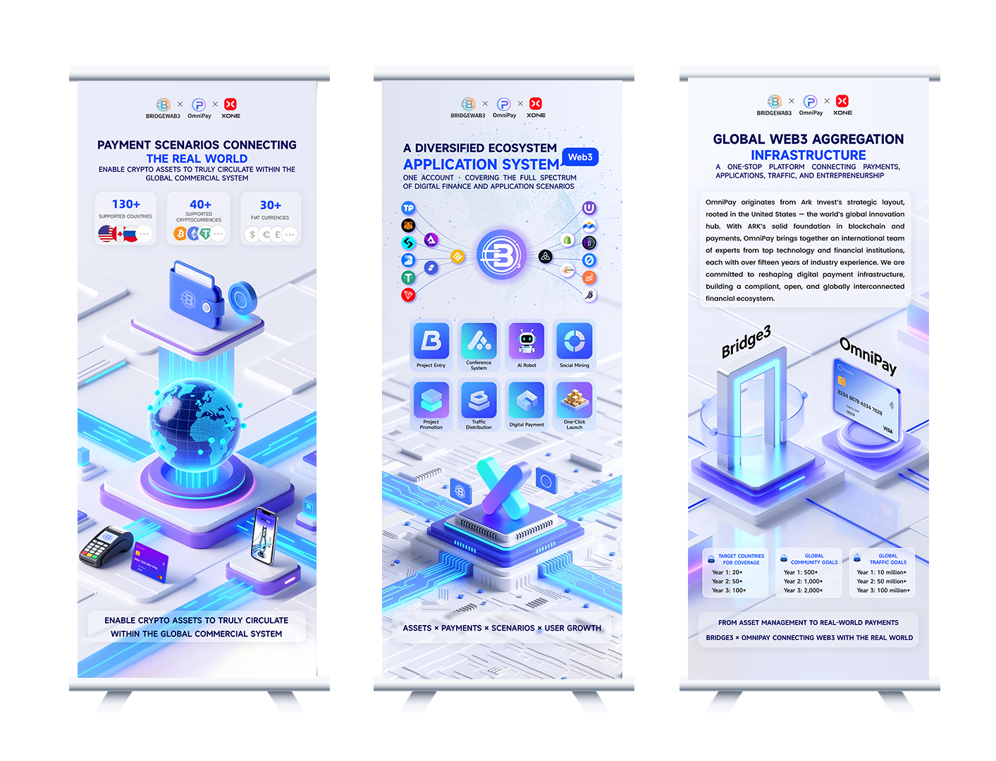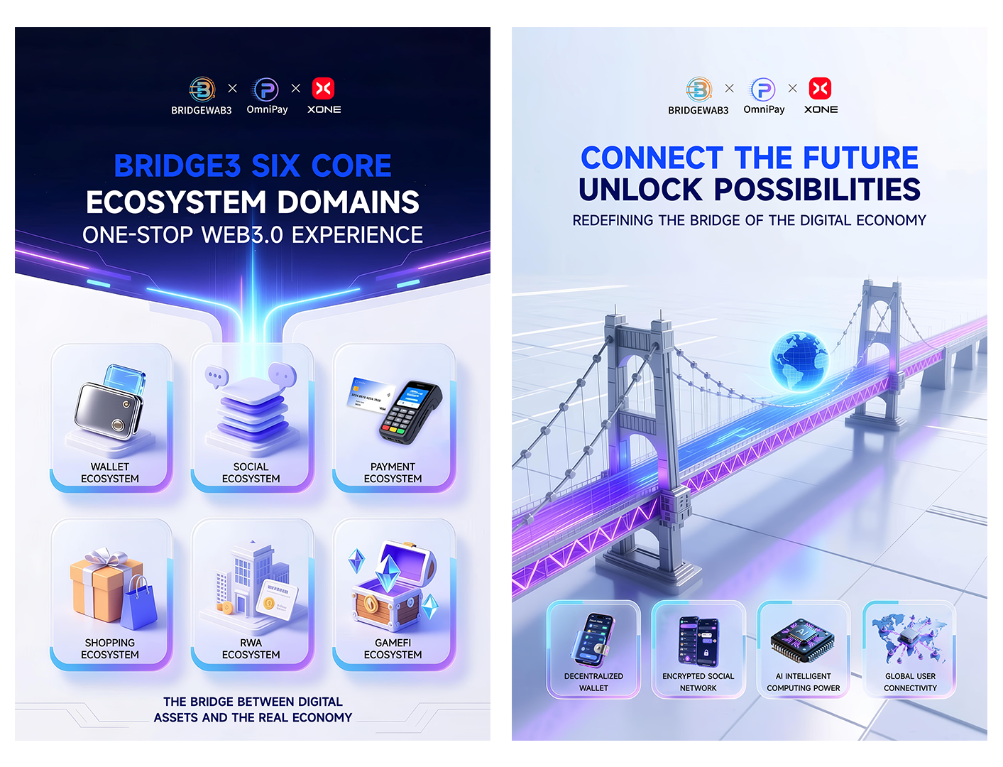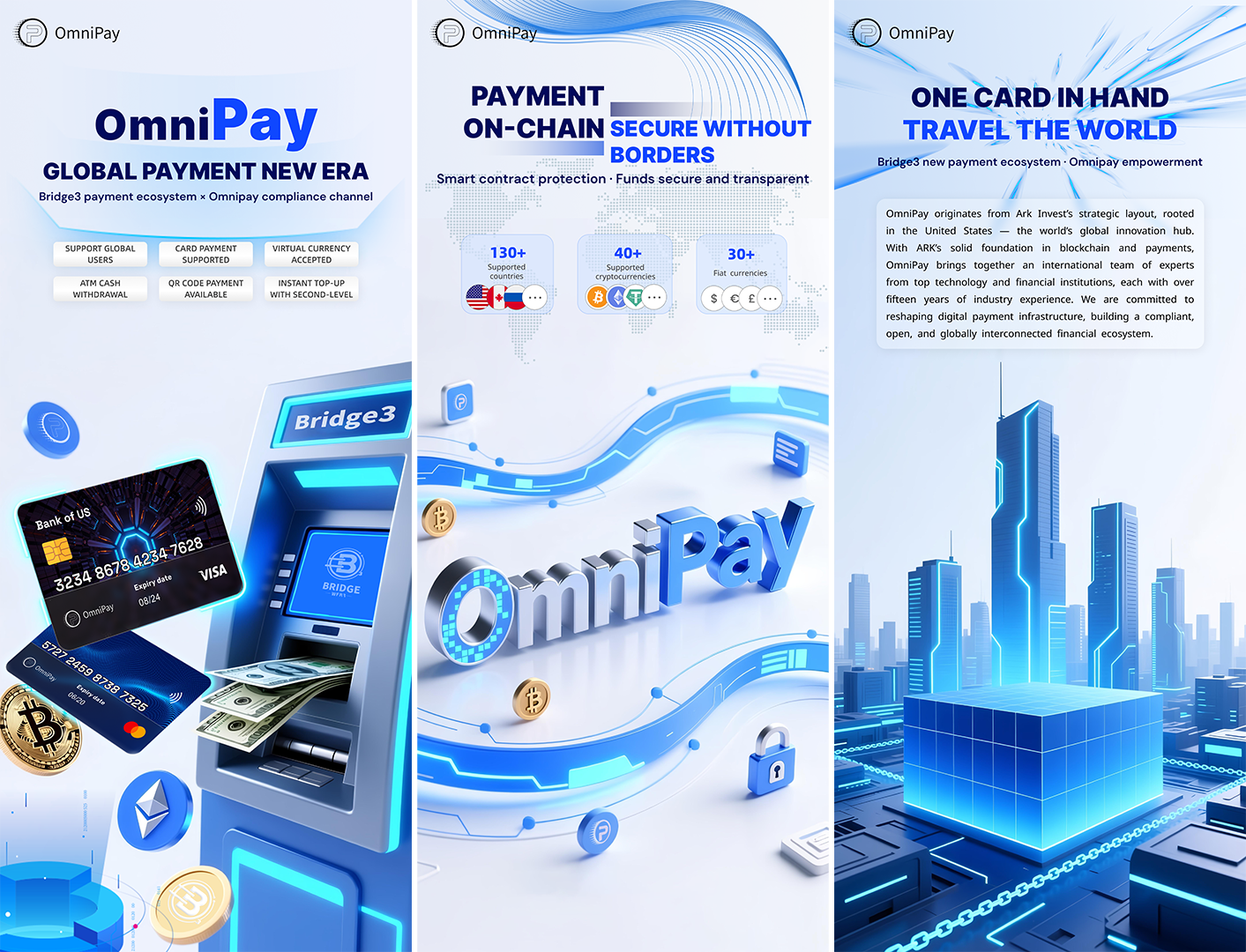 Bridge3 is a world-leading Web3 integrated infrastructure that pioneers the deep integration of startup incubation and traffic distribution, creating a one-stop platform that covers the full lifecycle of a project.It integrates core modules such as decentralized wallets, encrypted social networking, one-click launch, promotion matrix, airdrop-driven growth, cross-chain trading, digital payments, online collaboration, asset management, and AI analytics—forming a highly integrated decentralized ecosystem service system. OmniPay is strategically incubated by the U.S. ARK Invest Group and headquartered in Silicon Valley, dedicated to building a compliant, secure, and open global crypto payment infrastructure. Leveraging ARK’s deep foundation in financial technology and blockchain architecture, OmniPay has created an all-scenario payment network that integrates virtual cards, digital wallets, API interfaces, and RWA asset anchoring systems, enabling multi-chain interoperability, cross-border clearing, and real-time settlement with high efficiency.