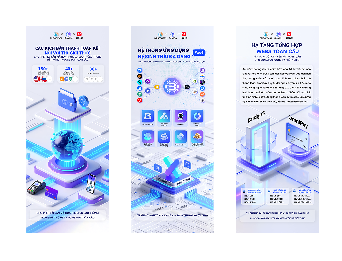 Bridge3 là cơ sở hạ tầng tổng hợp Web3 hàng đầu thế giới, tiên phong kết hợp sâu giữa ươm tạo khởi nghiệp và phân phối lưu lượng truy cập, xây dựng một nền tảng một cửa bao phủ toàn bộ vòng đời của dự án.Nền tảng tích hợp các mô-đun cốt lõi như ví phi tập trung, mạng xã hội mã hóa, khởi chạy một chạm, ma trận truyền thông, airdrop thu hút người dùng, giao dịch cross-chain, thanh toán số, cộng tác trực tuyến, quản lý tài sản và phân tích AI—tạo nên một hệ sinh thái phi tập trung có mức tích hợp cao. OmniPay được ươm tạo chiến lược bởi Tập đoàn ARK Invest của Hoa Kỳ, có trụ sở chính tại Thung lũng Silicon, hướng tới việc xây dựng một hạ tầng thanh toán tiền mã hóa toàn cầu tuân thủ, an toàn và mở. Dựa trên nền tảng vững chắc của ARK trong lĩnh vực công nghệ tài chính và kiến trúc blockchain, OmniPay đã phát triển một mạng lưới thanh toán toàn diện bao gồm thẻ ảo, ví kỹ thuật số, giao diện API và hệ thống neo tài sản RWA, cho phép tương tác đa chuỗi, thanh toán xuyên biên giới và quyết toán thời gian thực hiệu quả cao.